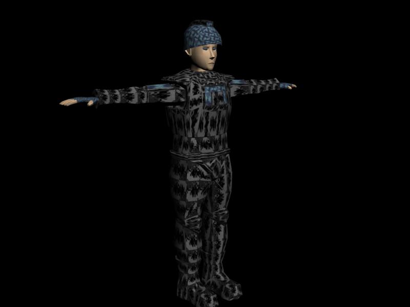 main character with crappy textures and un UVW mapped