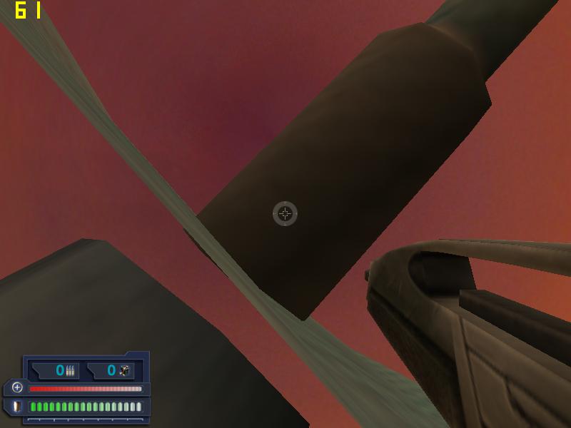 i get 30-60fps on a Atlon 2000+ geforcefx5500; but collision doesn't work properly: Look, i am inside a radar! Also there are walls i can go trough and some platforms i can jump through.